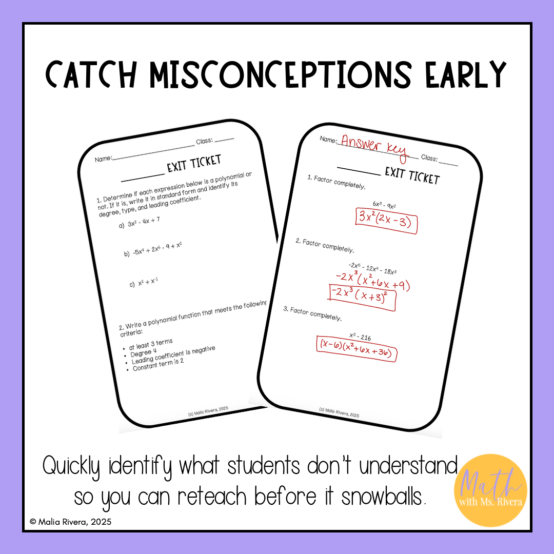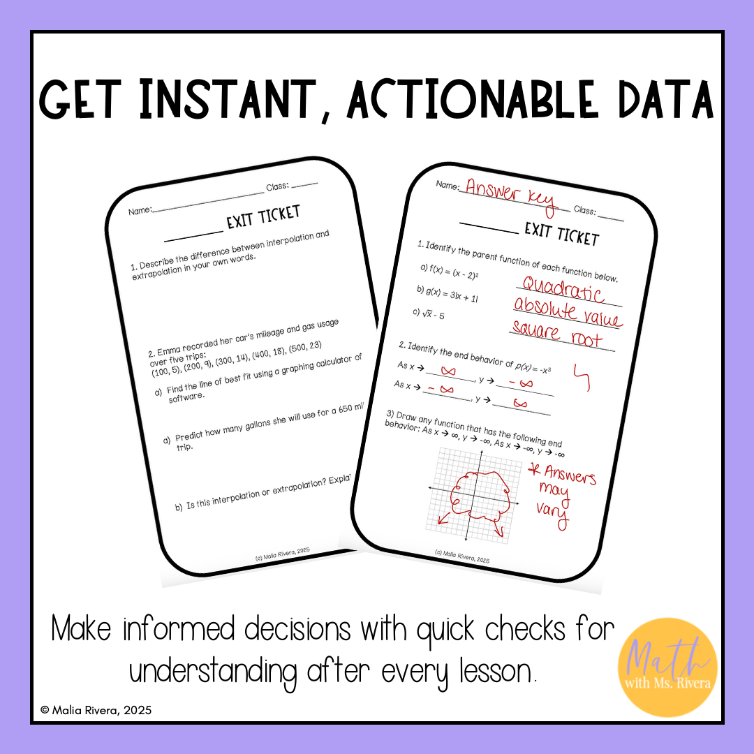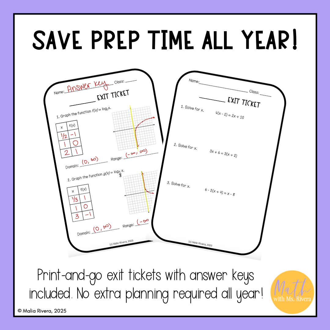 Give your Algebra 2 students the chance to show what they know with these full-year Algebra 2 Exit Tickets! Each quick, focused exit ticket helps you check for understanding, catch misconceptions early, and plan your next steps with confidence, without adding hours to your grading.