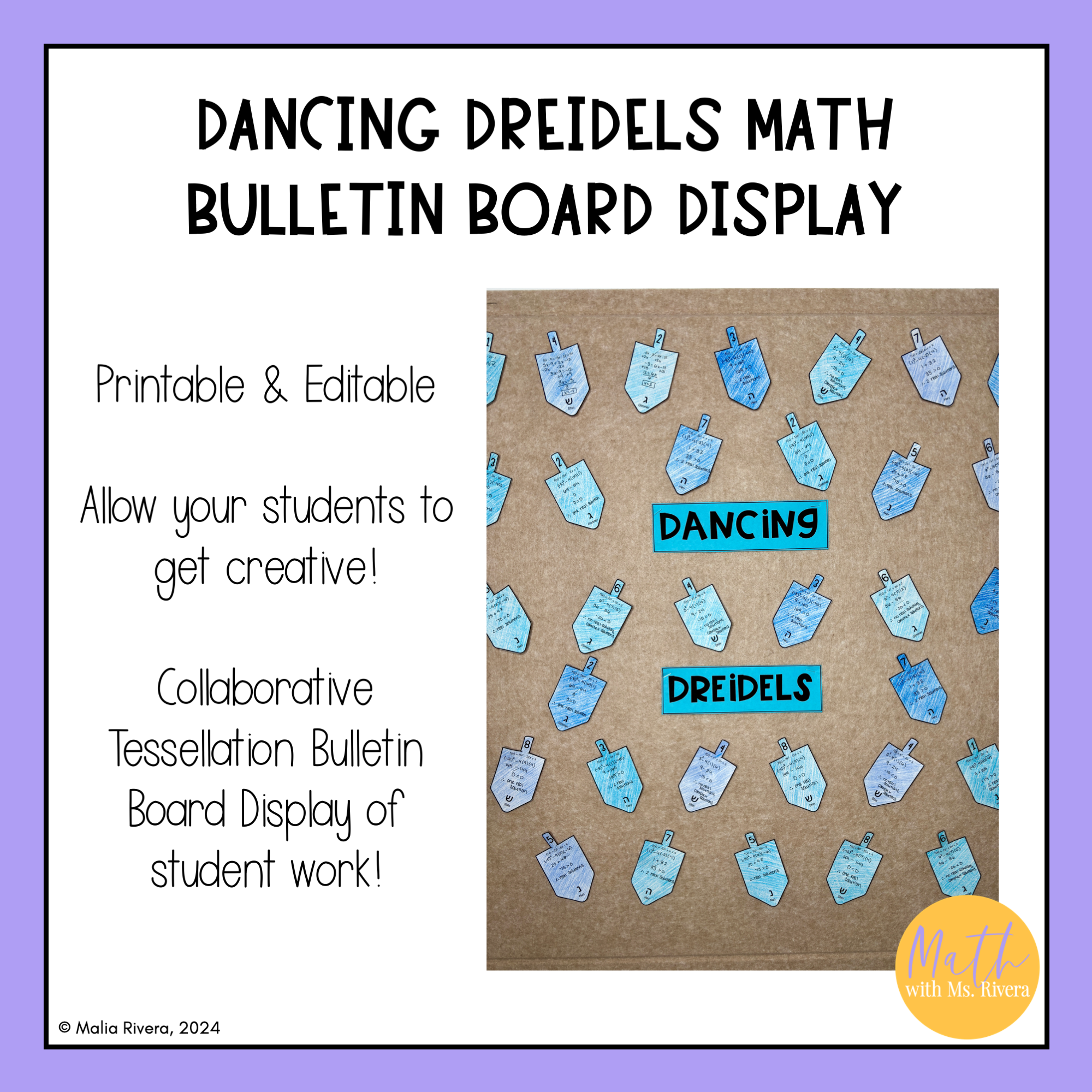 Once all the student pieces are finished, it will create one large, festive Hanukkah dreidel bulletin board display. This is a great way to engage your students and decorate your classroom!
