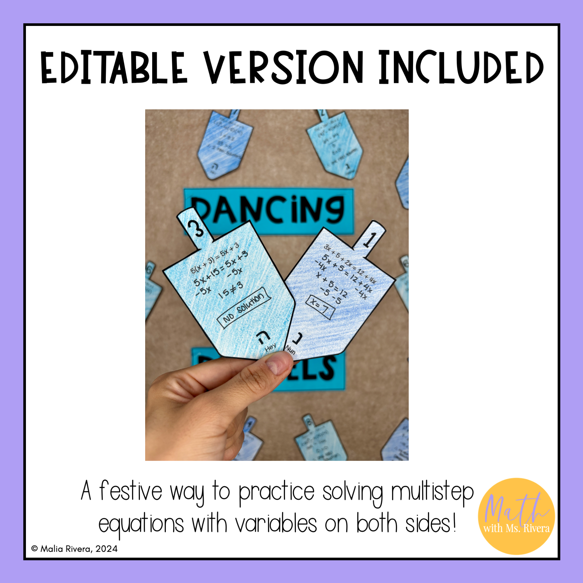 Looking for an activity for your algebra 1 students to review solving multi step equations with variables on both sides? Look no further! This solving multi step equations Hanukkah dreidel bulletin board activity is just what you need.