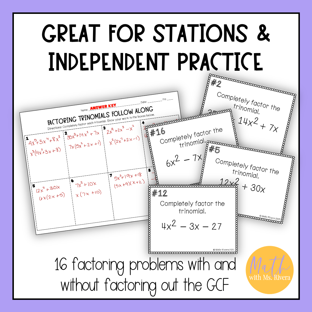 Looking for a self-checking printable activity for your Algebra 1 students to practice factoring trinomials? Look no further! This self-checking task cards activity are just what you need!