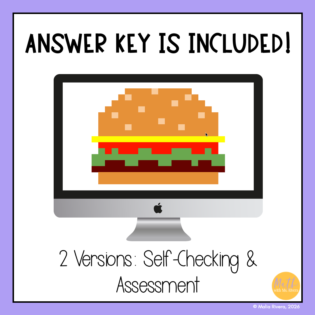 This activity is self-checking, so students instantly know whether their answers are correct. Correct answers reveal part of the pixel art image, while incorrect answers do not. This encourages accuracy, supports independent work, and reduces the need for constant teacher feedback.