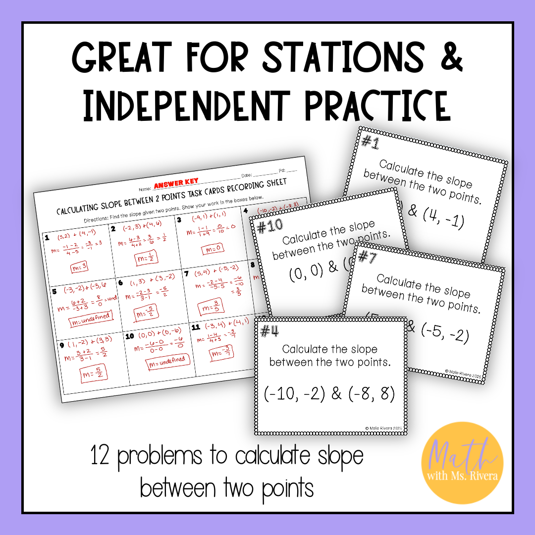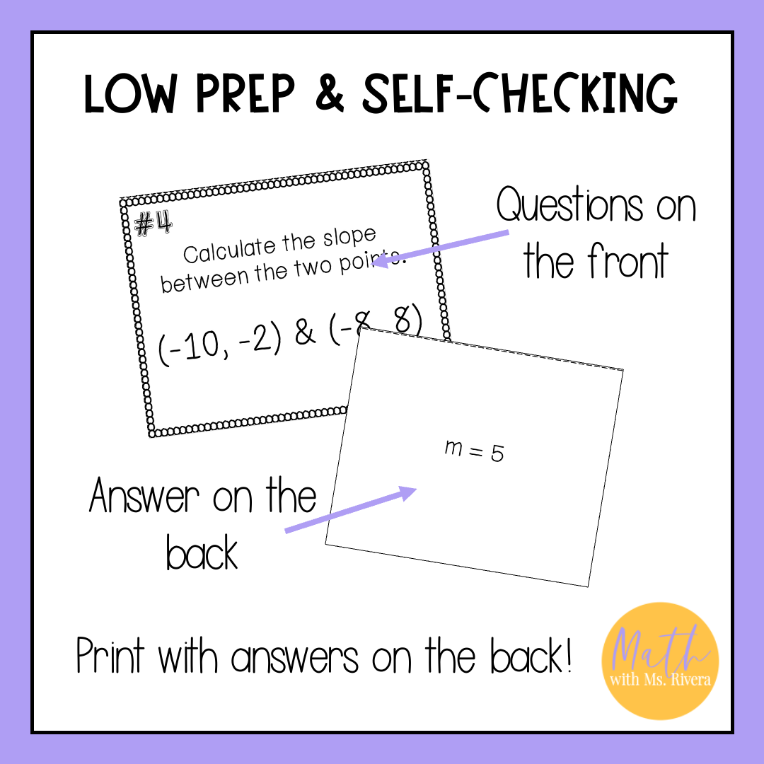 Looking for a self-checking printable activity for your PreAlgebra or Algebra 1 students to practice finding slope from two points? Look no further! This self-checking task cards activity are just what you need!