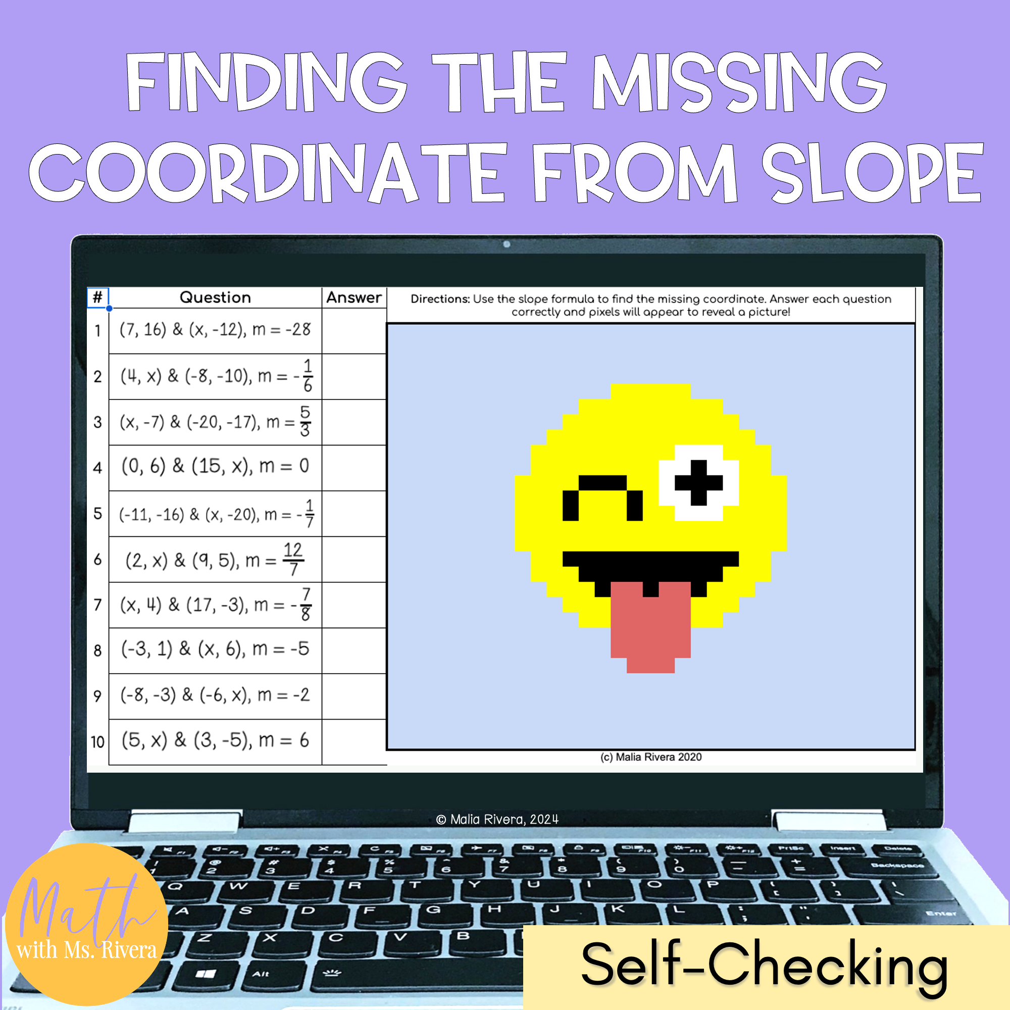 This activity is perfect for reinforcing how to solve for a missing coordinate using slope while keeping students motivated with instant feedback.