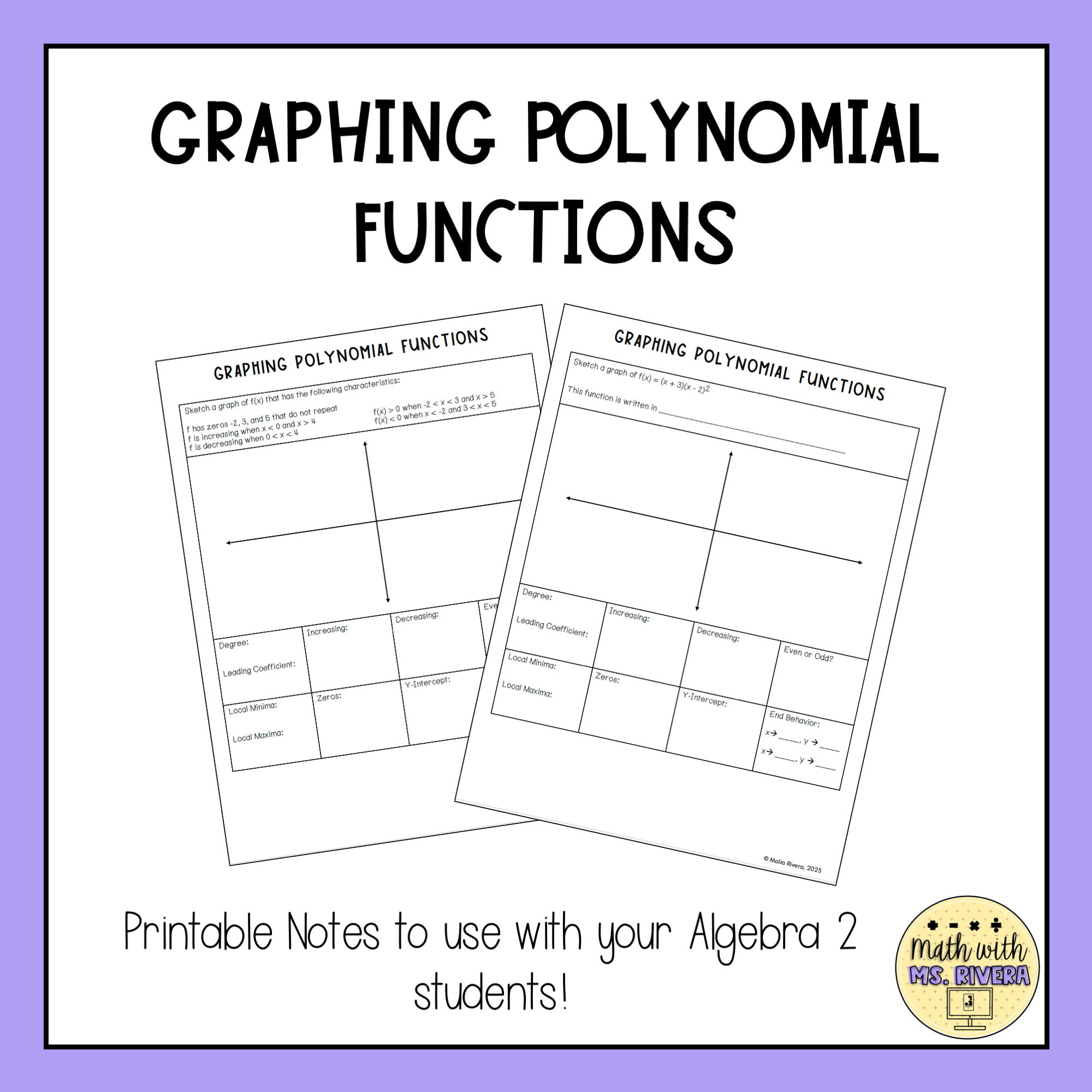 This lesson is part of a Polynomial Functions Guided Notes Unit that covers all major Algebra 2 polynomial topics. The full unit keeps instruction consistent and saves planning time.