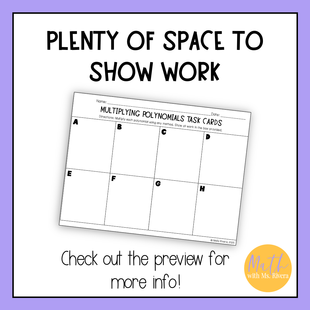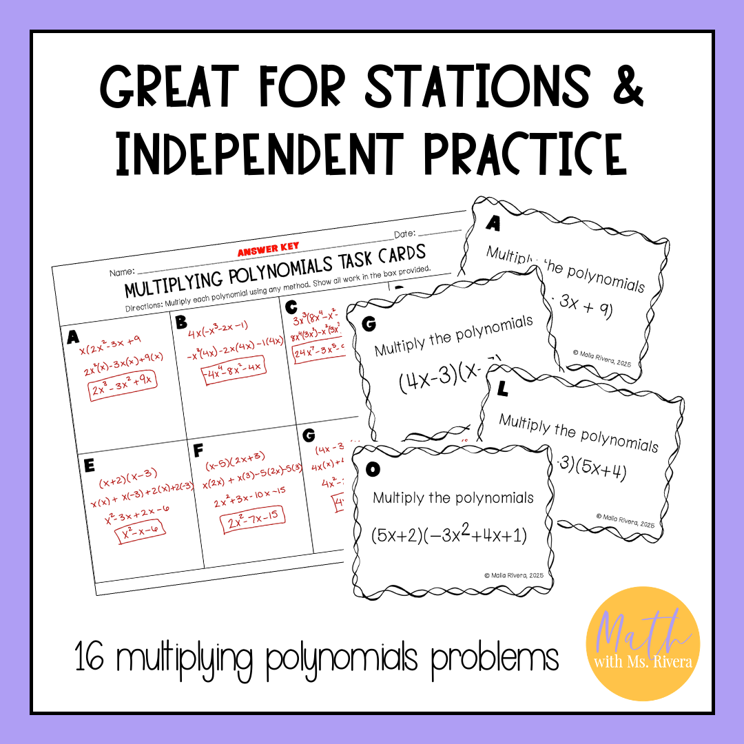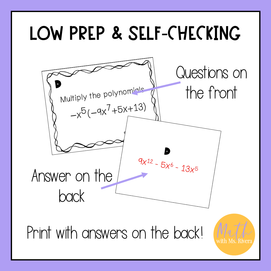Looking for a self-checking printable activity for your Algebra 1 students to practice multiplying polynomials? Look no further! This self-checking task cards activity are just what you need!