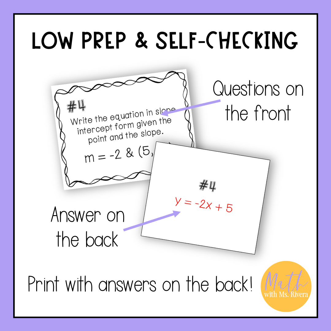 Looking for a self-checking printable activity for your Algebra 1 students to practice writing linear equations in slope intercept form from graphs? Look no further! This self-checking task cards activity are just what you need!