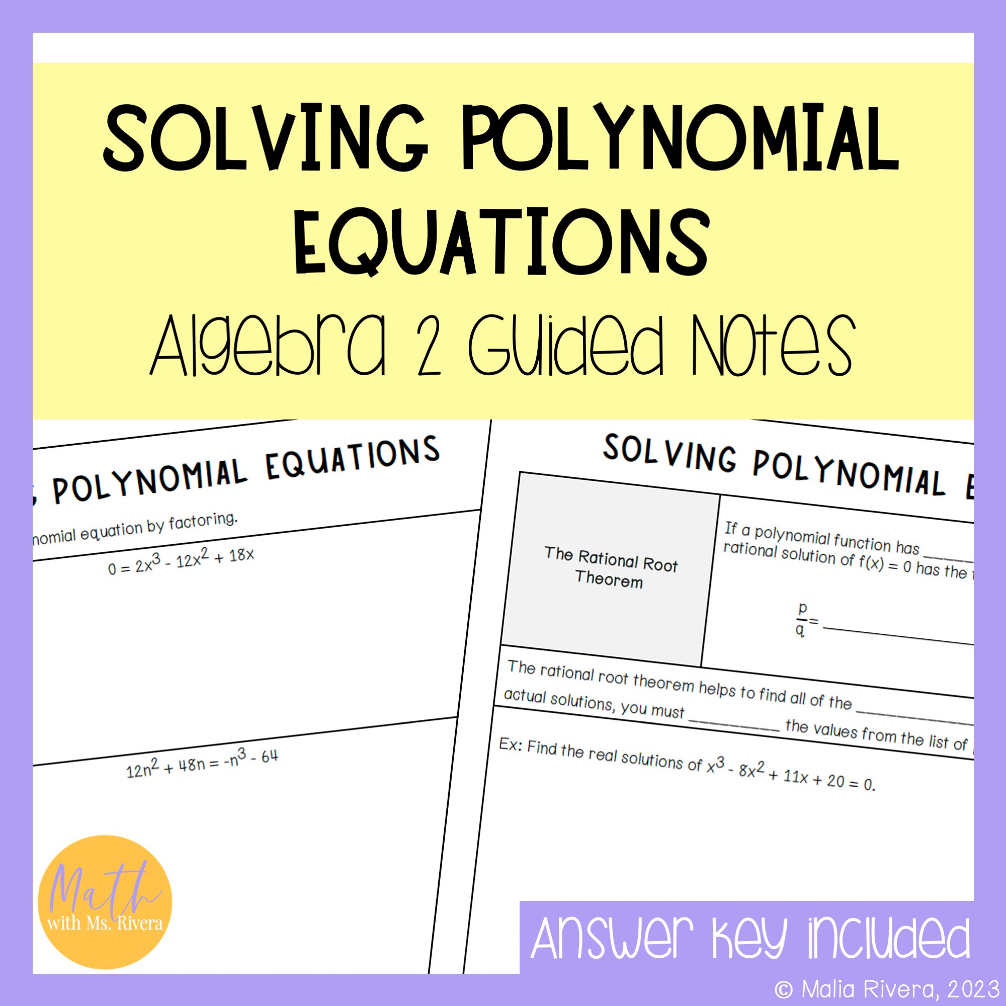 solving polynomial equations guided notes algebra 2 COVER