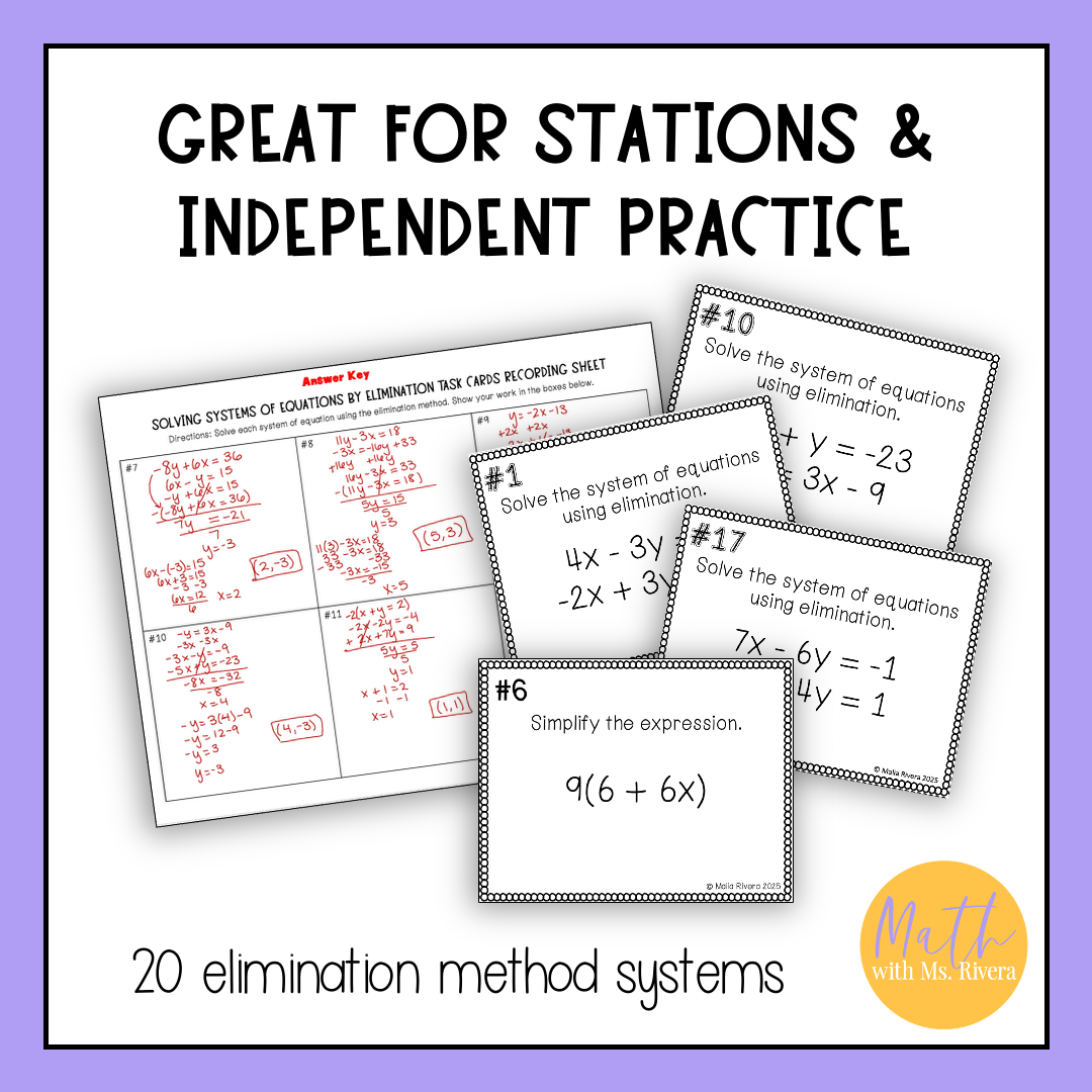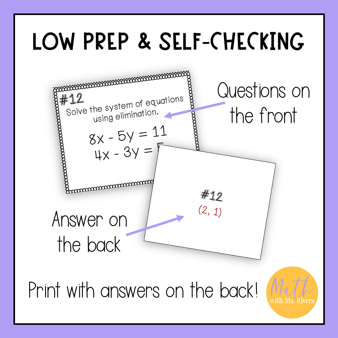 Looking for a self-checking printable activity for your Algebra 1 students to practice solving systems of equations by elimination? Look no further! This self-checking task cards activity are just what you need!