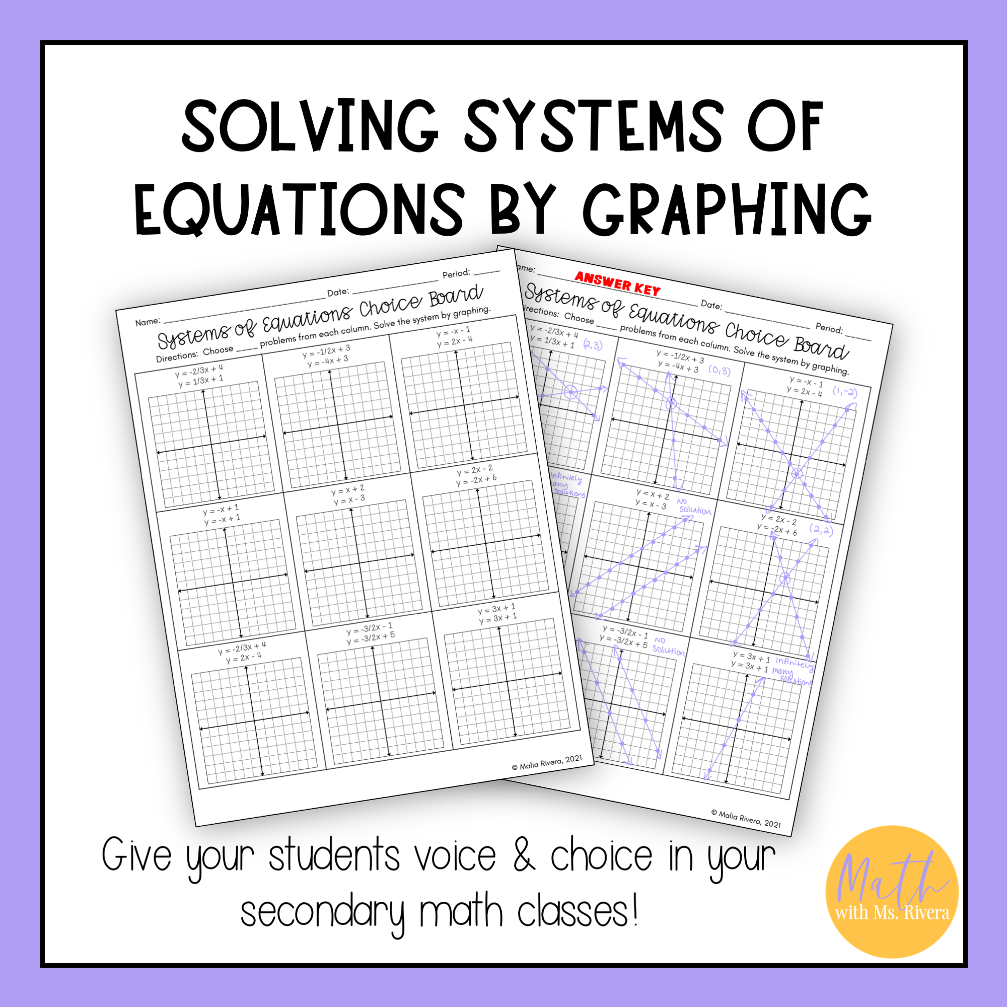 Solving Systems of Equations by Graphing Worksheet Choice Board for Algebra 1