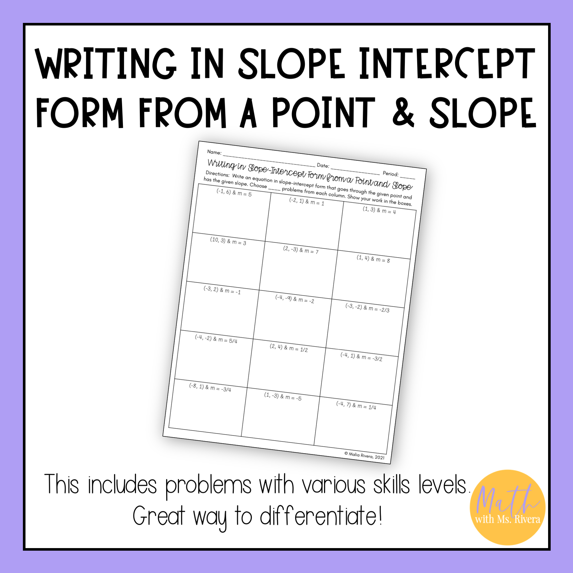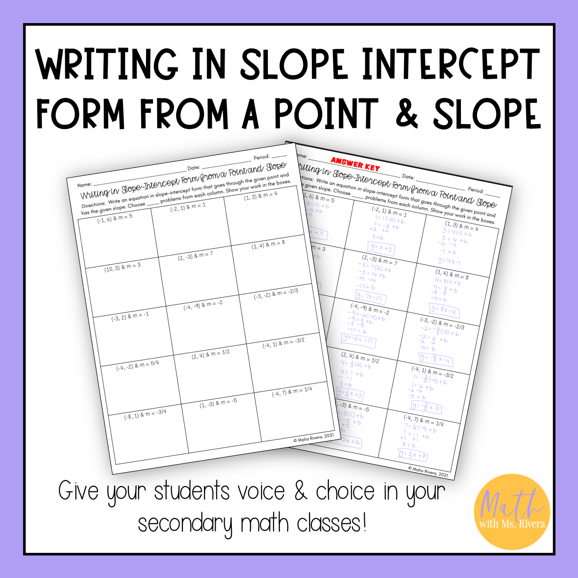 Writing in Slope Intercept Form from Two Points Worksheet Choice Board for Algebra 1