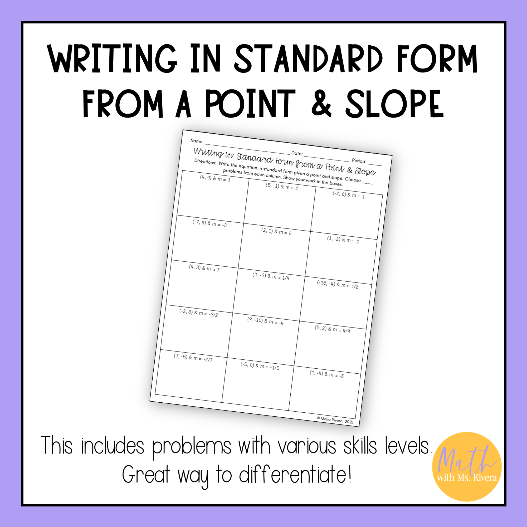 Copyright © Math with Ms. Rivera. All rights reserved by author. Permission to copy for single classroom use only. Please purchase additional licenses if you intend to share this product.